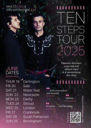 Dan Whitehouse is already well loved to UK audiences for his poetic songwriting and open-hearted voice. But it’s Max ZT – described, not unreasonably, as “the Jimi Hendrix of the hammered dulcimer” – who will likely leave you speechless. A Grammy-nominated virtuoso from New York, Max plays the dulcimer like no-one else on earth: with joy, fluidity and a kind of luminous calm.
