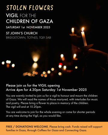 On Saturday 1st November there will be a Remembrance Vigil for the Children of Gaza at St John’s Church, Bridgetown, ...